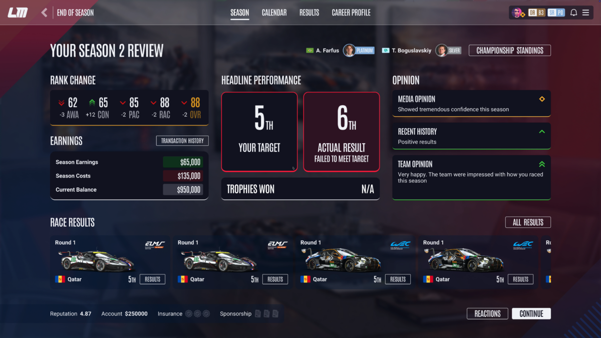 Team-Endurance-Rennen und Karrieremodus