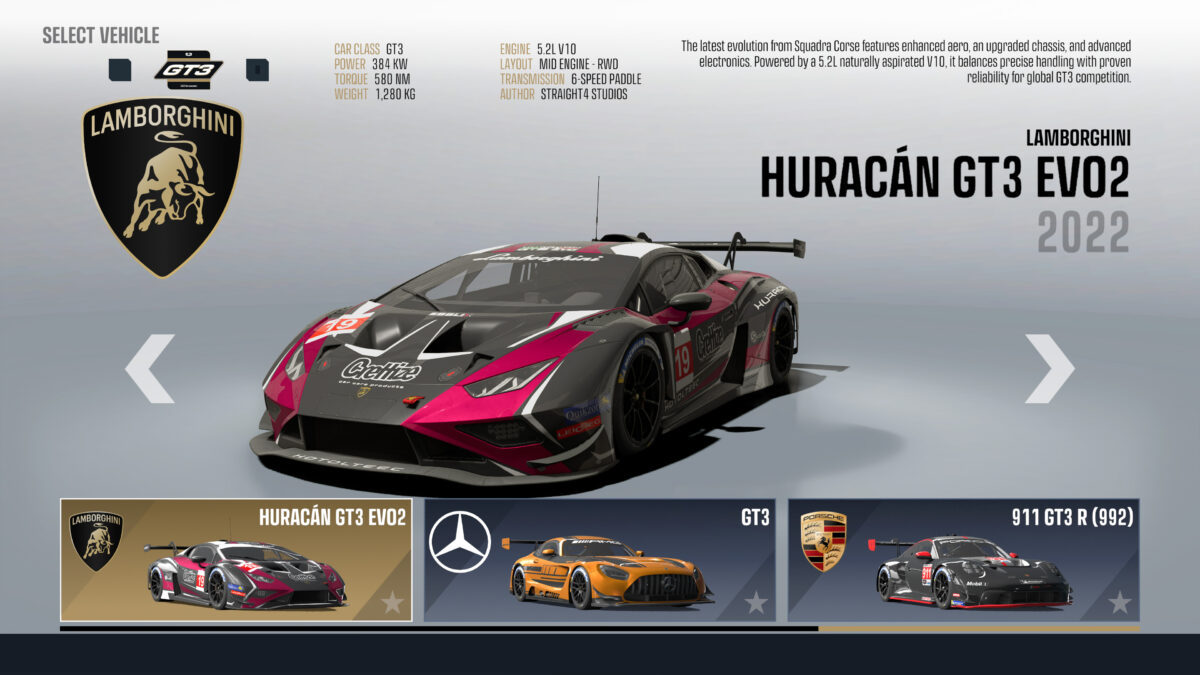- Lamborghini Huracán GT3 Evo2: ein zusätzliches Livery hinzugefügt.